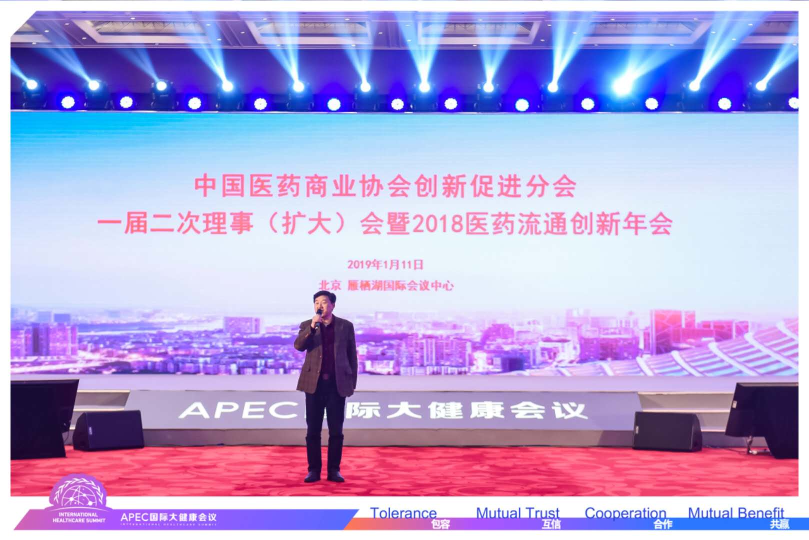 2019年1月11日,正值隆冬時節(jié),傲雪凌霜,北京雁西湖國際會議中心鴻雁廳內(nèi)卻暖意融融,春意盎然。中國醫(yī)藥商業(yè)協(xié)會創(chuàng)新促進分會一屆二次理事(擴大)會暨醫(yī)藥流通創(chuàng)新年會在這里隆重舉行,中國醫(yī)藥商業(yè)協(xié)會、創(chuàng)新促進分會領(lǐng)導和部分副會長、理事、會員單位等50多人出席會議。上海海欣醫(yī)藥作為會員單位參會。